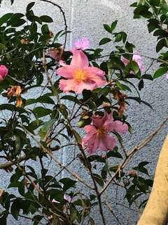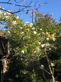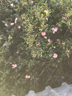 我が家の生け垣の山茶花が咲いています。
