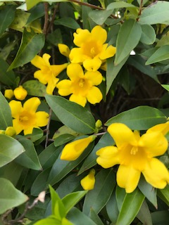 ガレージのフェンスのキャロラインジャスミンが咲きました。