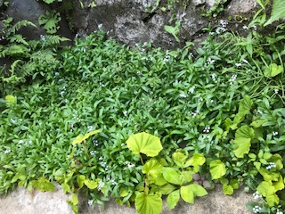 我が家の勝手口の湧水池に勿忘草が群生し、花が咲きました。