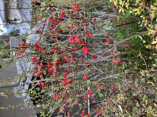 木瓜の花が満開です。