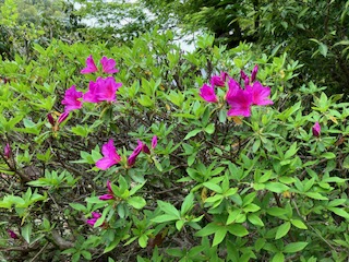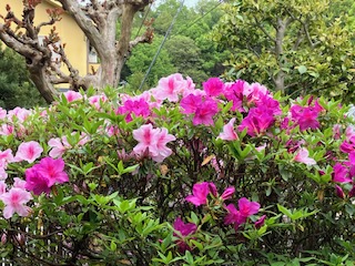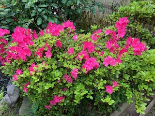 我が家の庭のサツキとツツジの花が咲き競っています。