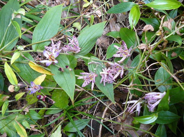 崖の上にホトトギスが咲いています。