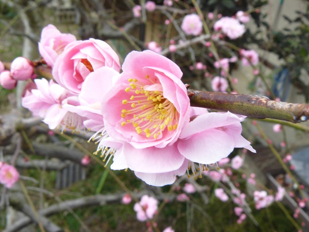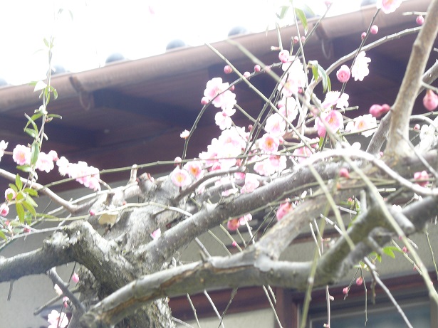 我が家の庭の枝垂れ梅が咲きました。
