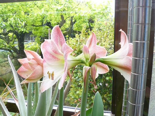 今年もサンルームの中でアマリリスが咲きました。