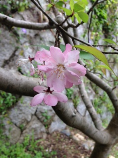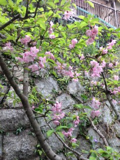 裏庭の崖っぷちの海棠桜が綺麗に咲きました。