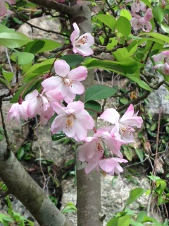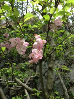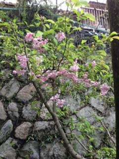 裏庭の海棠桜が満開です。