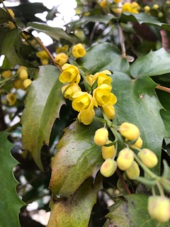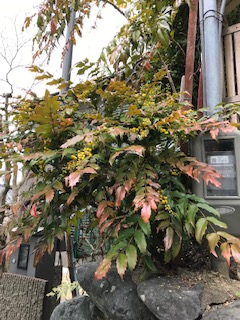 我が家の隅に柊南天が咲きました。