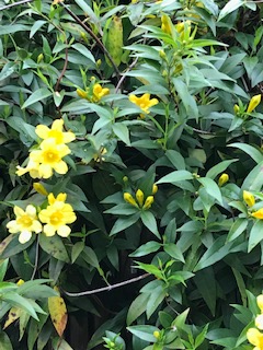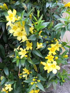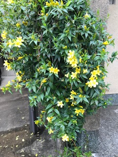 今年はキャロラインジャスミンの花は少なめに咲いています。
