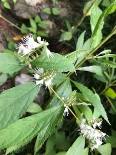 この時期に霜柱の花が咲きます。 寒さが増すと茎に霜柱が付きます。