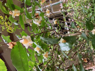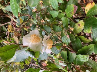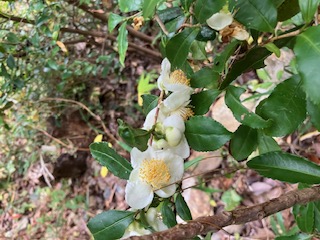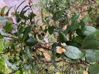 庭の至る所で、茶の花が咲いています。
