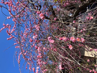 今年も見事に枝垂れ梅の花が満開となりました。