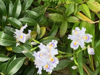 玄関わきの庭のシャガの花です。